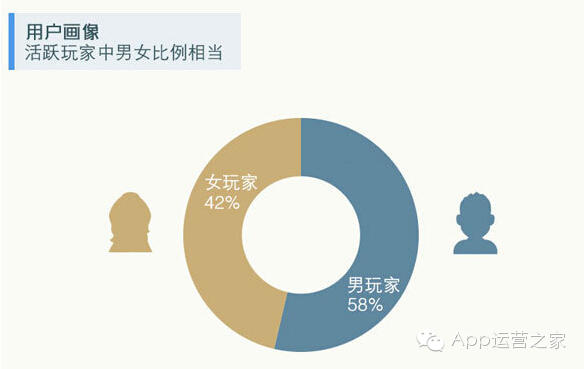 从男女用户分析,手游中女性玩家撑起了半边天。相比端游及页游中男女比例失衡现象,手游的玩家群体较平均。