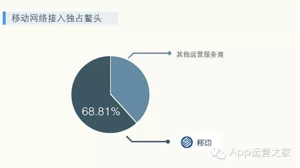 移动运营商的分布情况上,移动的用户比例高达68.81%,占据半壁江山。