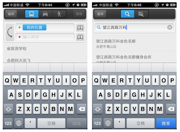 百度地图也是我用得比较顺手的一个地图导航应用,在减少输入方面也做的比较出色,百度地图拥有cookies功能, 另外就是百度搜索的技术应用在地名的匹配中也很让人欣喜,在用户输入到一半的时候,下面的候选列表就出现了目标地址,用户直接停止输入点击列表即可。