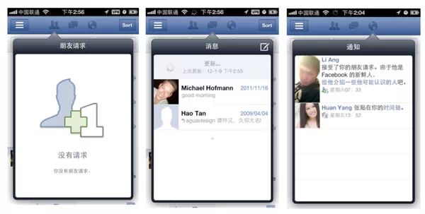 Facebook 的朋友请求,消息,通知都是采用全局导航的方式,就是面板设计的丑了些~