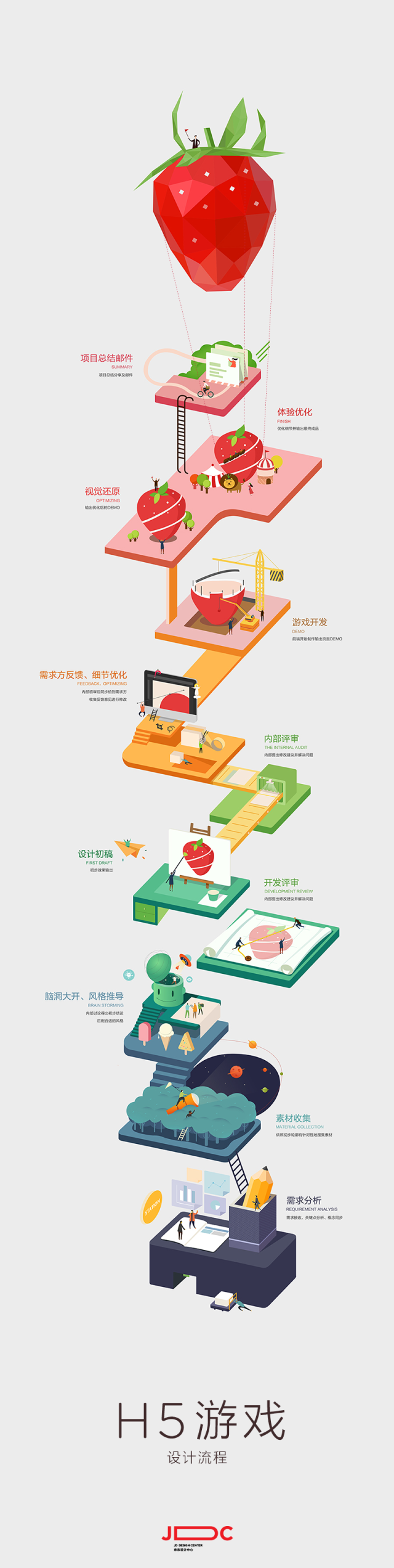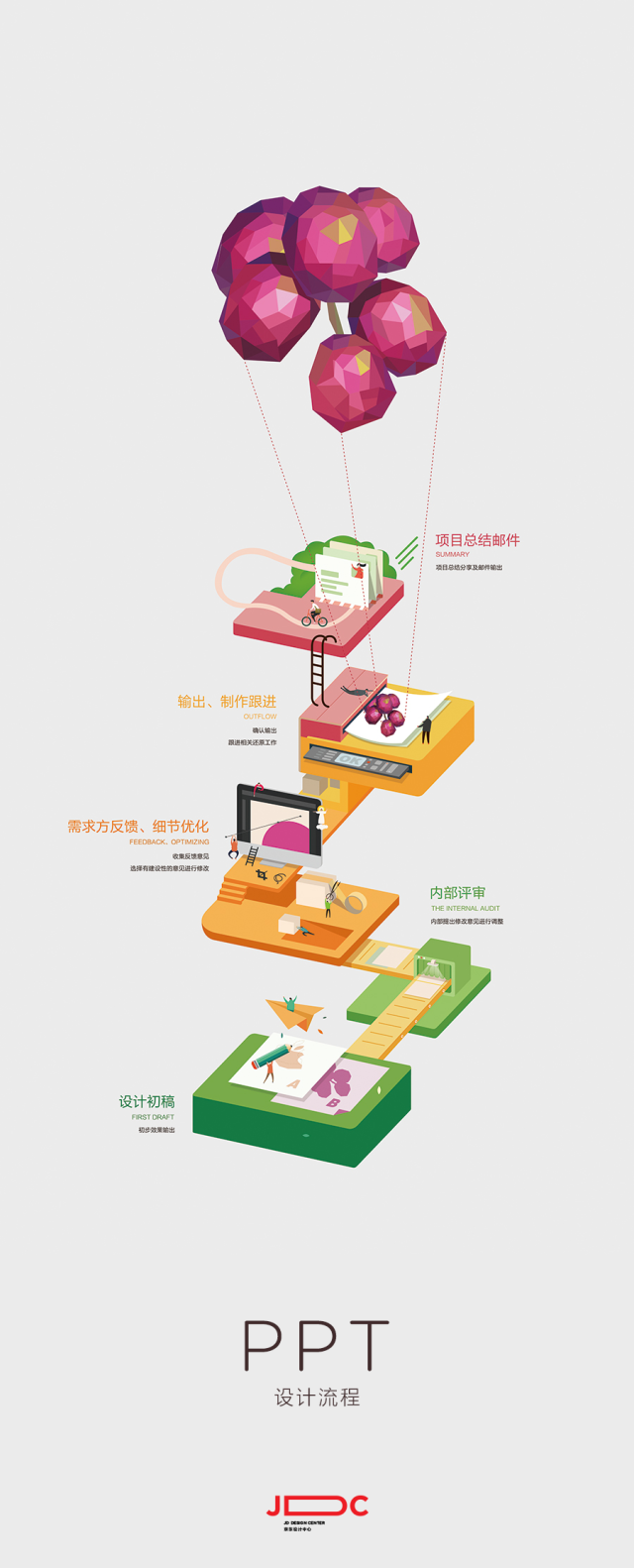 为了跟产品同步设计流程和更高效地沟通需求,前段时间和剑剑一起输出了JDC工作流程系列图表,将不同类型的需求流程进行可视化的整理。每一个环节拆分成小的组件,各组件间可以自由拆分组合。