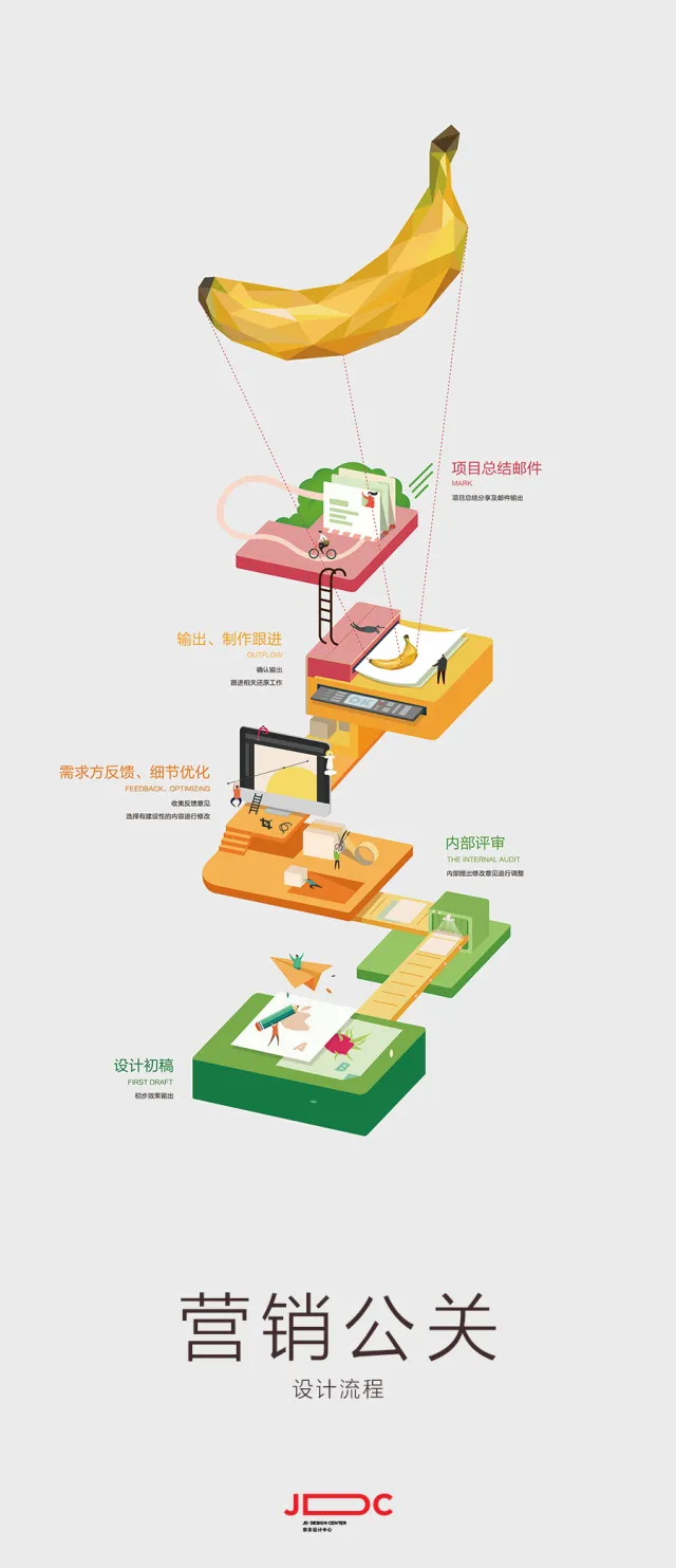 小雪碎碎念:产品工作中和设计的交集是很多的,工作中能够和设计更好的协作不仅项目做得好,也会工作得更开心。了解设计的工作流程能够一定程度促进哦。下文关于设计工作流程的图总结有意思又明了。感谢京东包子美眉的分享。