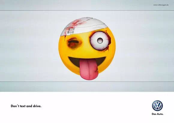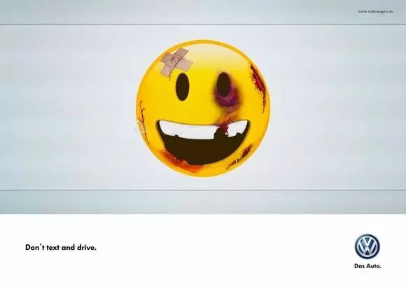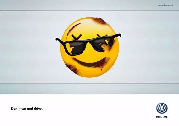 大众汽车广告:以大家常用的emoji表情为设计主题,告诫大家千万不要酒后驾车。