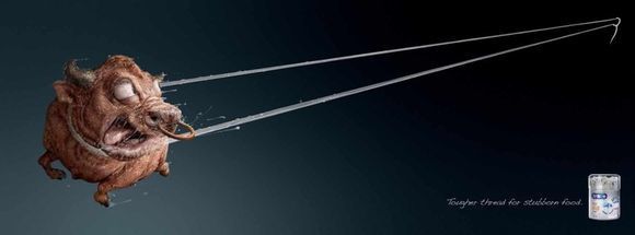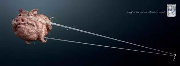 舒客牙线广告:不管食物残渣有多顽固,还是能被舒客牙线给清理掉。