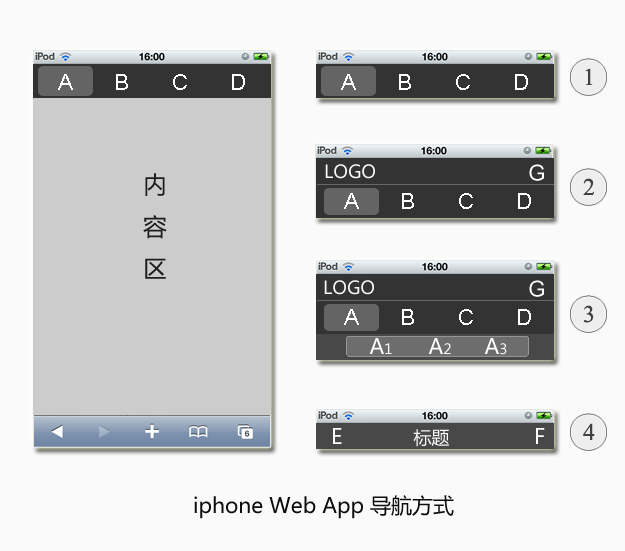 最近在做iphone端Web App的项目。由于产品形式新颖,技术环境不成熟,公司给与了较宽松的研发时间。在一个月的交互设计阶段,每个环节都得到多次讨论推敲,我从中感悟颇多。导航系统的设计是一个比较典型的点,拿出来与大家分享讨论一下。