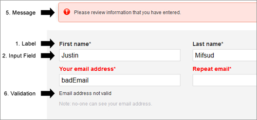 尽管在布局,功能,意图上存在不同,所有的表单都包含3大部分,就如Caroline Jarrett and Gerry Gaffney在他们书中(Forms That Work: Designing Web Forms for Usability表单实现:为可用性设计表单)所记: