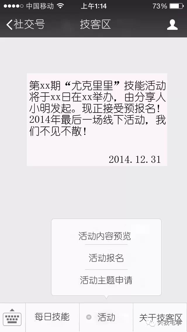 写到这里,或许有有读者会疑问,这样说来社交号是不是没有对手?不然,前文提到的技客区产品,早期发力线下,积累大批忠实粉丝,且最近已经获得百万级风投,发力打造线上平台和app,弥补之前薄弱的online端,准备进入快速增长期。以其之前积累的良好口碑,有更加便捷的交流和展示的产品载体,潜力不可轻看。而且就笔者私下多次其负责人交流得知,技客区的用户质量相对较高(素质,学识,经济能力等),这也是一般社交产品无法企及的。除此之外,还有笔者最近接触到一位前辈的创业项目,也是主打线下活动社交的在线平台(用户在官网上发布活动需求,获得响应完成线下体验等),当然,不知道的项目还有更多,这不能说明社交O2O化就一定是社交产品的唯一未来,但是作为一个产品创新突破口,完成更高阶用户社交需求,未尝不是一个可取之处。