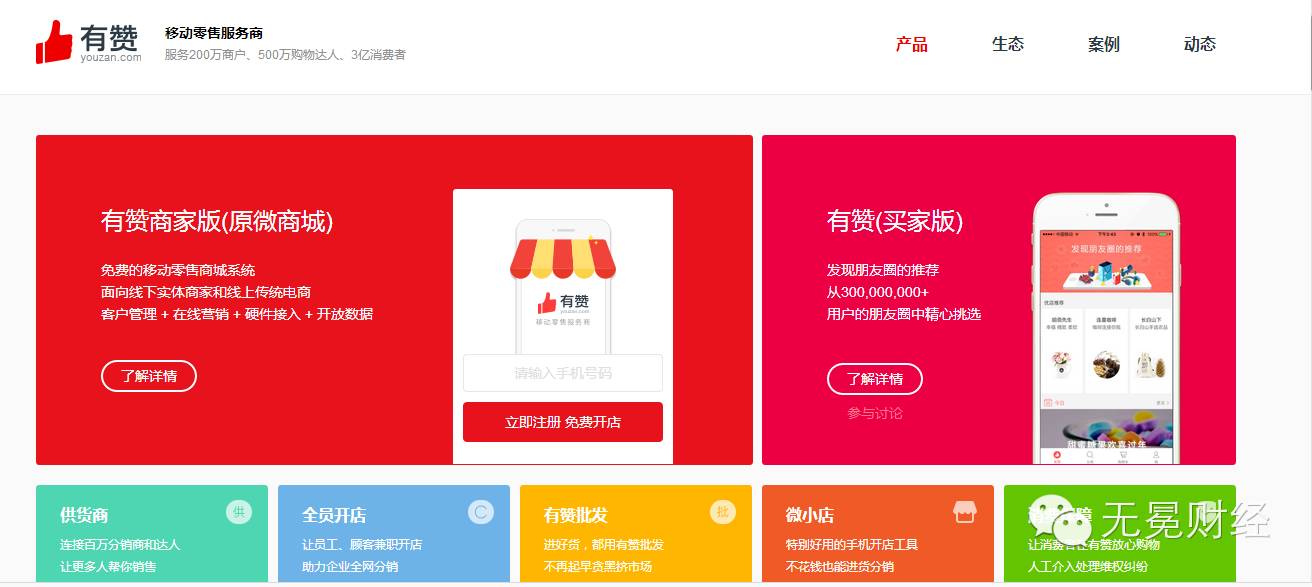 因此,有赞创办的首要目的就是“去中心化”:在有赞平台上,免费开店成为杀手锏,服务商和零售商的货品上下架、客服、店面装修、营销插件等服务一律免费;而有赞自身,只是一个服务于电商客户的微信工具和社区管理工具,移动社交属性鲜明。