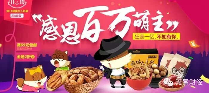 ▲三只松鼠“双十一”宣传海报,2015年“双十一”期间创造了2.66亿的业绩