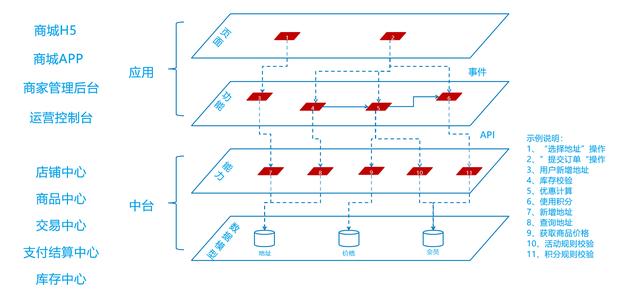 - 业务中台的能力都是通过接口提供给上方的功能或者页面进行调研,所以所有应用对应的底层业务逻辑代码都是使用业务中台的代码;