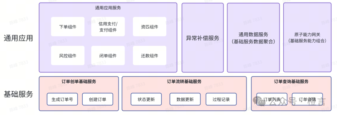 3)服务类-订单中心-底层技术服务分2套,分层侧重同上呼叫中心,详见下方图例