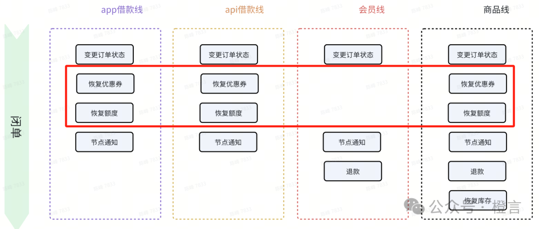 例如:订单中心的闭单的后置动作:恢复优惠券&恢复额度