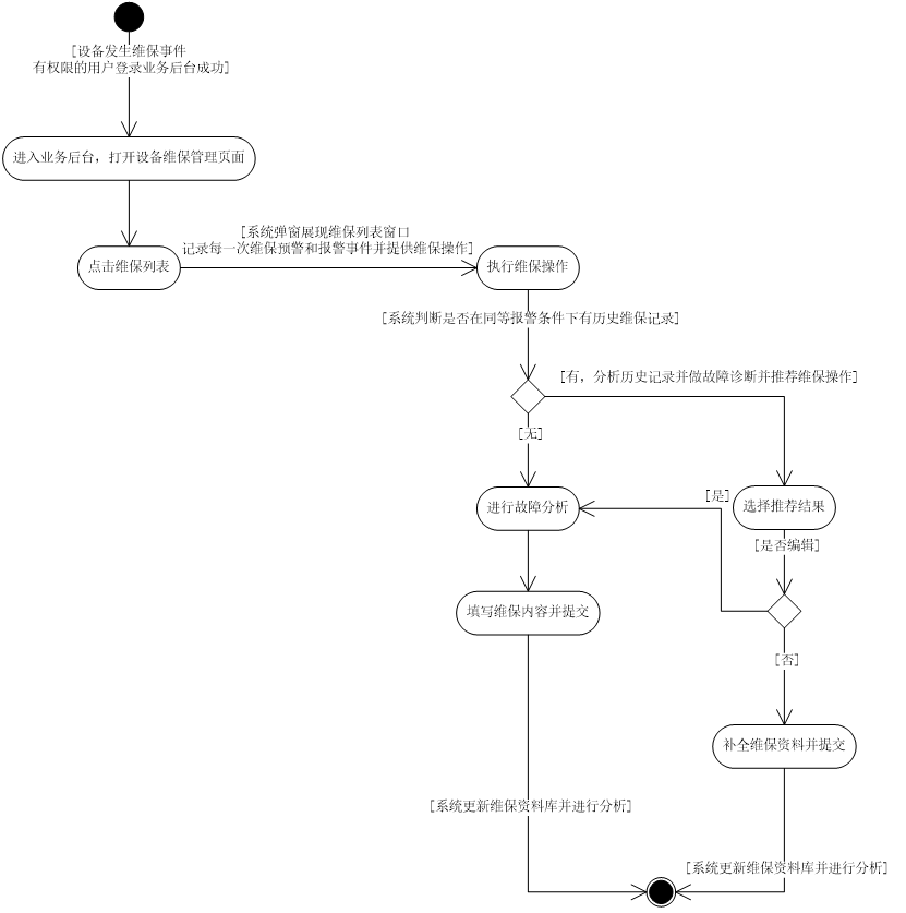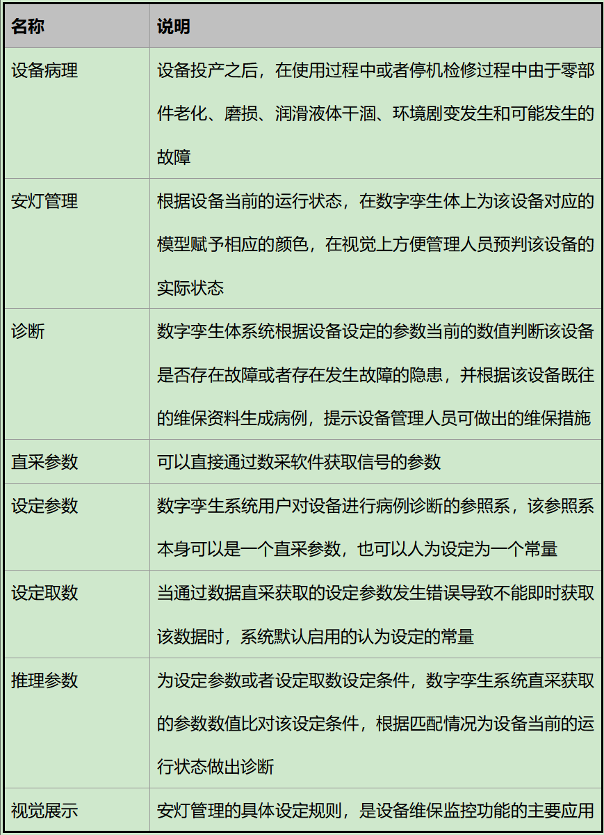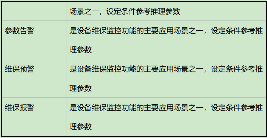 设备维保监控是数字孪生产品的标准化功能之一,也是高价值场景的主要体现,该功能部分的实现了设备预测性维护的既定目标,在初始化阶段,通过将设备当前病理状态抽象落脚到设备上动态采集的参数信号数值,根据当前数值的变化情况来判断设备是否需要维修保养,同时通过留存分析用户录入的维保内容,建立设备病理—设备参数—排查处理措施的关联关系表,最终完成该功能的闭环。