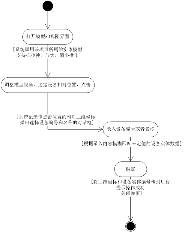 作为前置条件,在一般情况下,产线模型以及设备的实体和属性已经具备,设备实体和其他实体之间的关系已经创建,因此留给用户的工作只需要在数字孪生体上根据实际安装的物理空间位置进行映射,标明具体的某台没有独立模型的设备的实际位置即可。