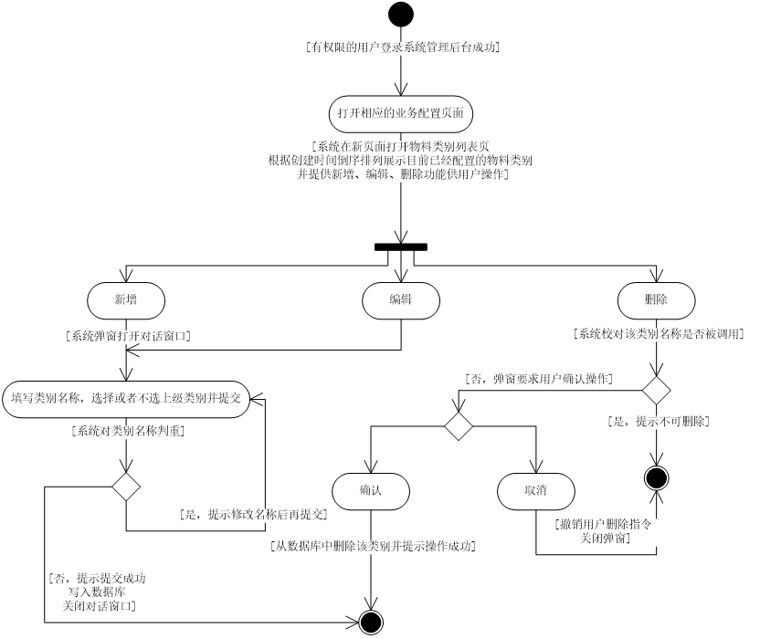 根据业务流描述,将业务分析的结果系统化抽象化之后,可得到最粗的业务活动图和ER图。