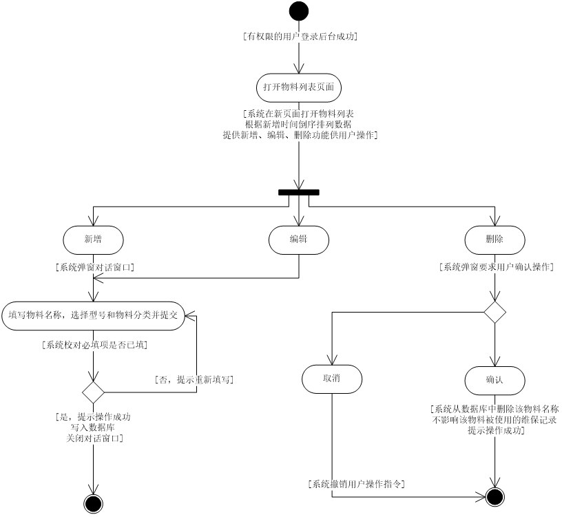 在初始化阶段,有权限的用户在登录系统管理后台之后,需要在业务配置相应的功能下维护设备维保需要用的物料信息,主要有轴承、皮带、润滑油三大类别,用户可以根据实际需要修改物料类别和型号,并可随时修改物料编号、所属类别和物料名称。