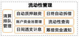 4)日终自动拆解(外部筹措资金):如果在清算窗口关闭前资金不足,可以向资金充裕的大户借款。日终自动拆借是指参与者预先签订协议,若在清算窗口关闭前仍未筹足资金,则按协议自动从另一方的清算账户中拆入所需资金以完成清算。
