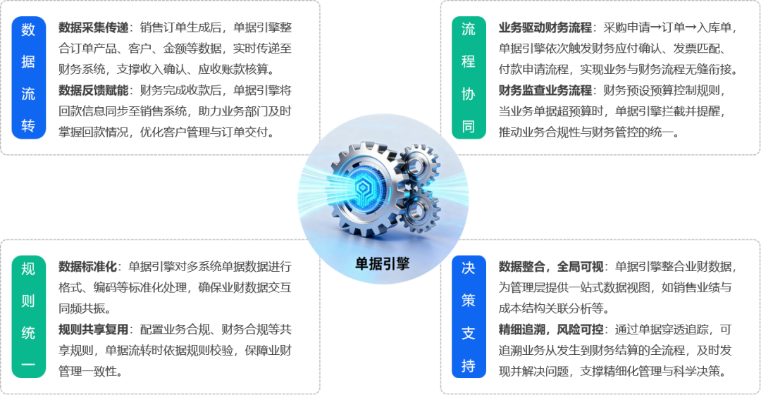 单据引擎是实现业财一体的关键枢纽,从多方面推动业务与财务的深度融合。