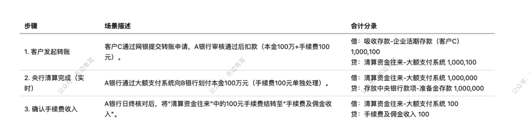 A银行确认手续费收入借:清算资金往来-大额支付系统 100贷:手续费及佣金收入 100