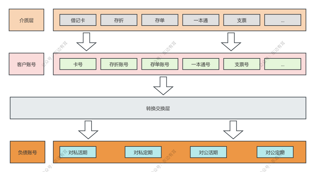 客户账号和负债账号分层,可实现客户账户和负债账户的相对分离。