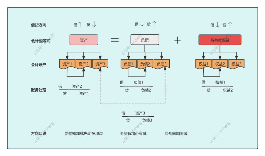 就是一个简化的会计恒等式。下面我将用不同的业务场景解释会计恒等式。