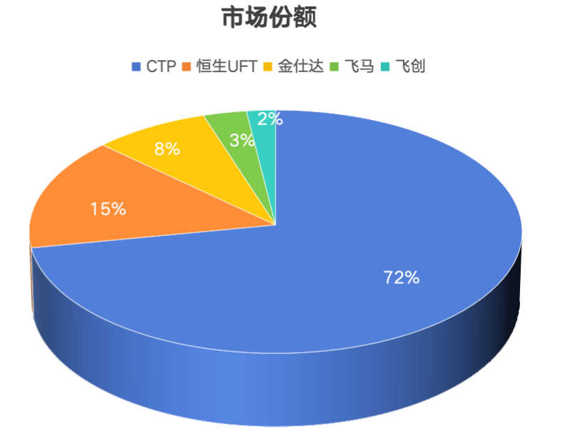 有关CTP的话题暂时聊到这里,它在中国期货市场的占有率具有绝对统治地位,保守估计在60%-70%以上。全国绝大部分期货公司都将其作为主交易系统或备选系统,特别是其二代产品CTP Mini,几乎成为期货公司的标配。