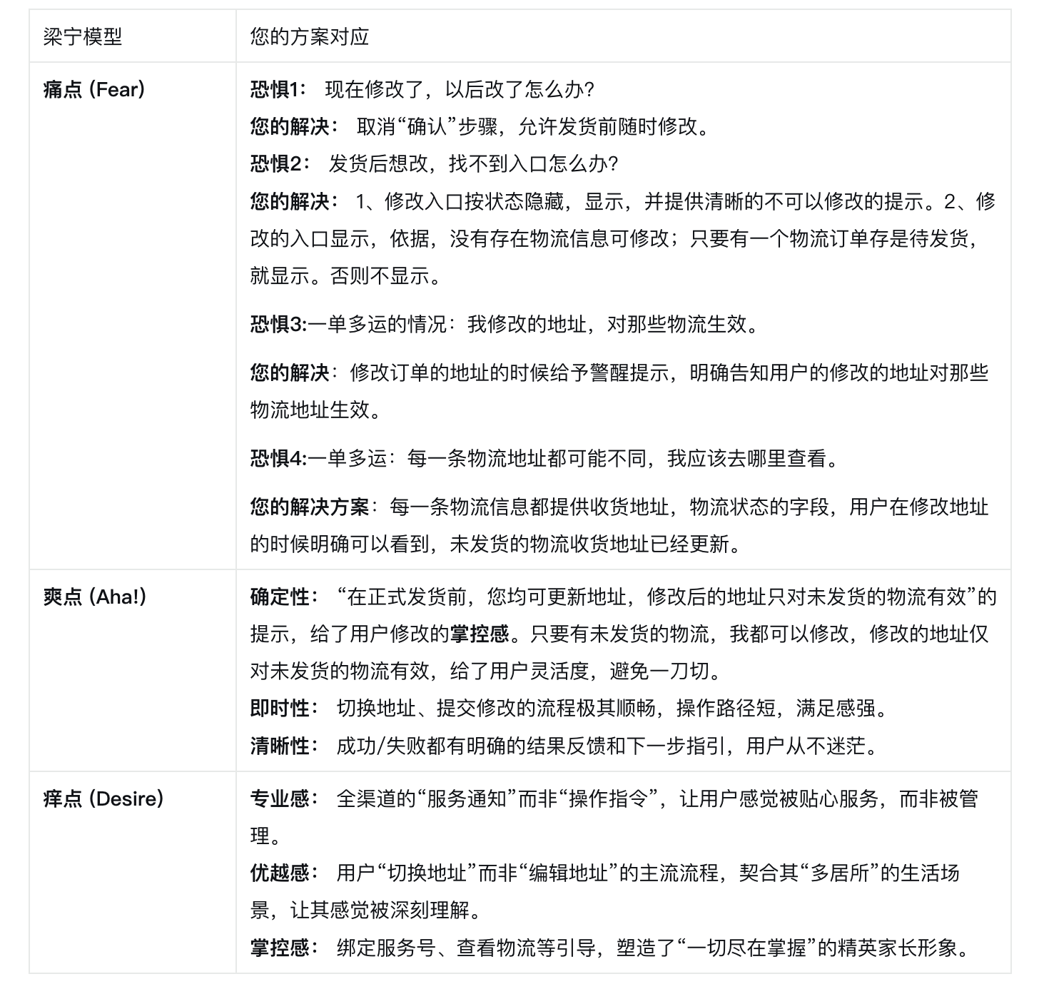 痛点 (解决烦恼): 上面提到的四大恐惧,被一个个精准解决,用户的核心烦恼消失了。