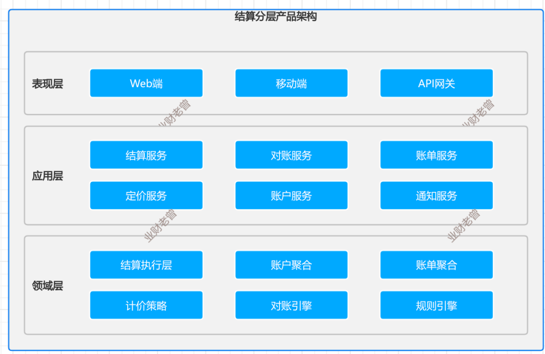 结算系统产品架构分为三层:表现层、应用层、领域层,如下图: