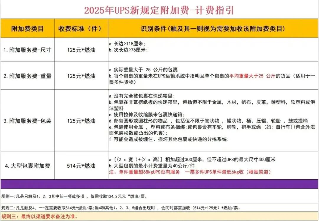 包括超重超尺寸、特殊形状包裹、危险品处理等费用。尺寸超标时,费用可能翻倍增长。