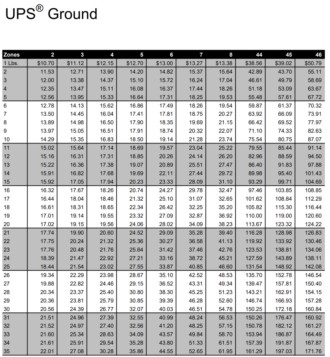 - 分区(zones):按国家 / 省州 / 邮编划分(如美国 Zone 1-9),跨 Zone 差价可达 30% 以上(例:Zone 1 的 1kg 包裹运费10.7,Zone9则达13.97);
