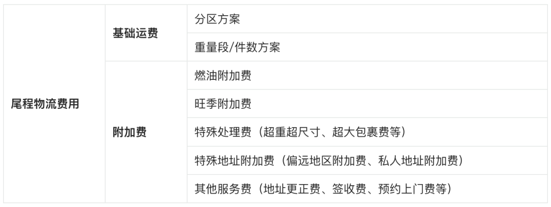 基础运费(核心):按「分区 + 重量段 / 件数」计费,是尾程成本的 “骨架”。