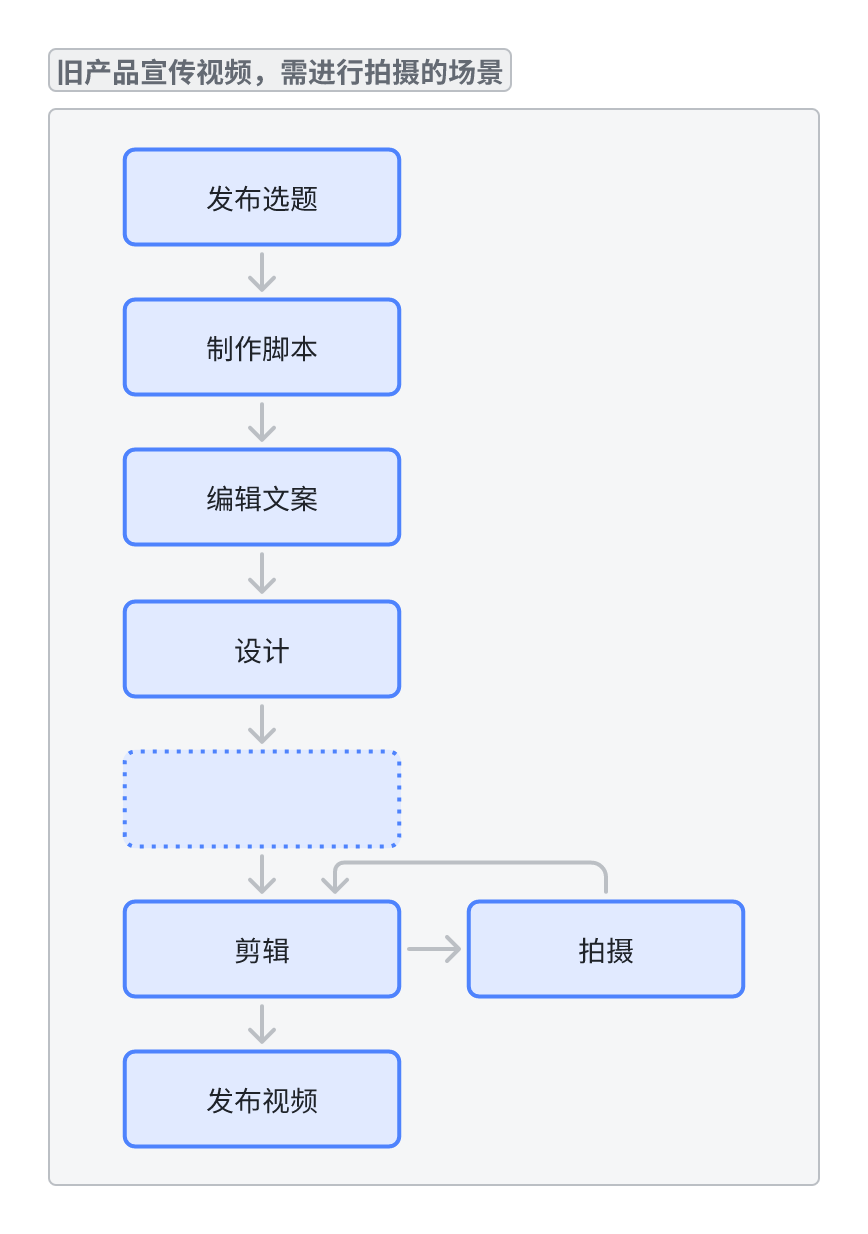 那么你会发现,同样都是产品宣传,有时候需要进行拍摄,有时候又不需要,所以如果仅按照内容类型来配置流程是行不通的。
