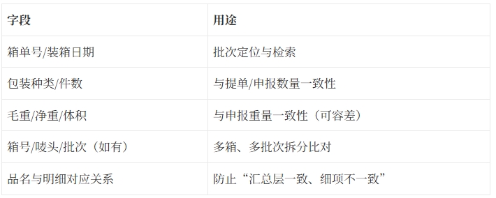 - 一票多箱/多批次:支持按箱号/唛头/批次维度比对,避免汇总层面掩盖细项差异。