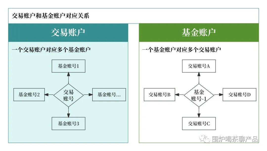 基金账户, 交易账户. 存在一对多, 多对一的情况