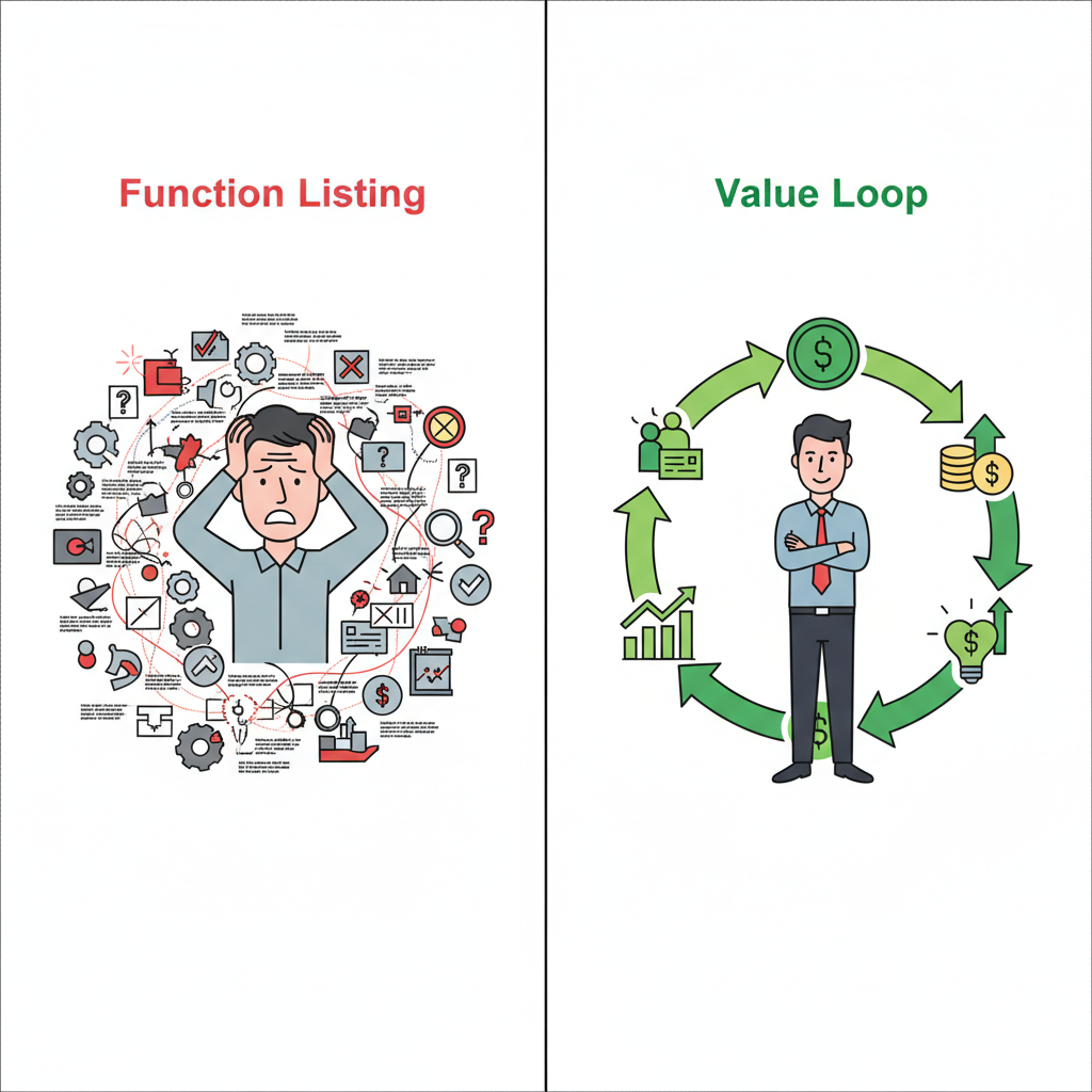 分析的起点和终点,都必须是“价值”,我们要做的是找到并构建一个能自我循环、持续增长的价值闭环,而不是做一个又一个孤立的功能点