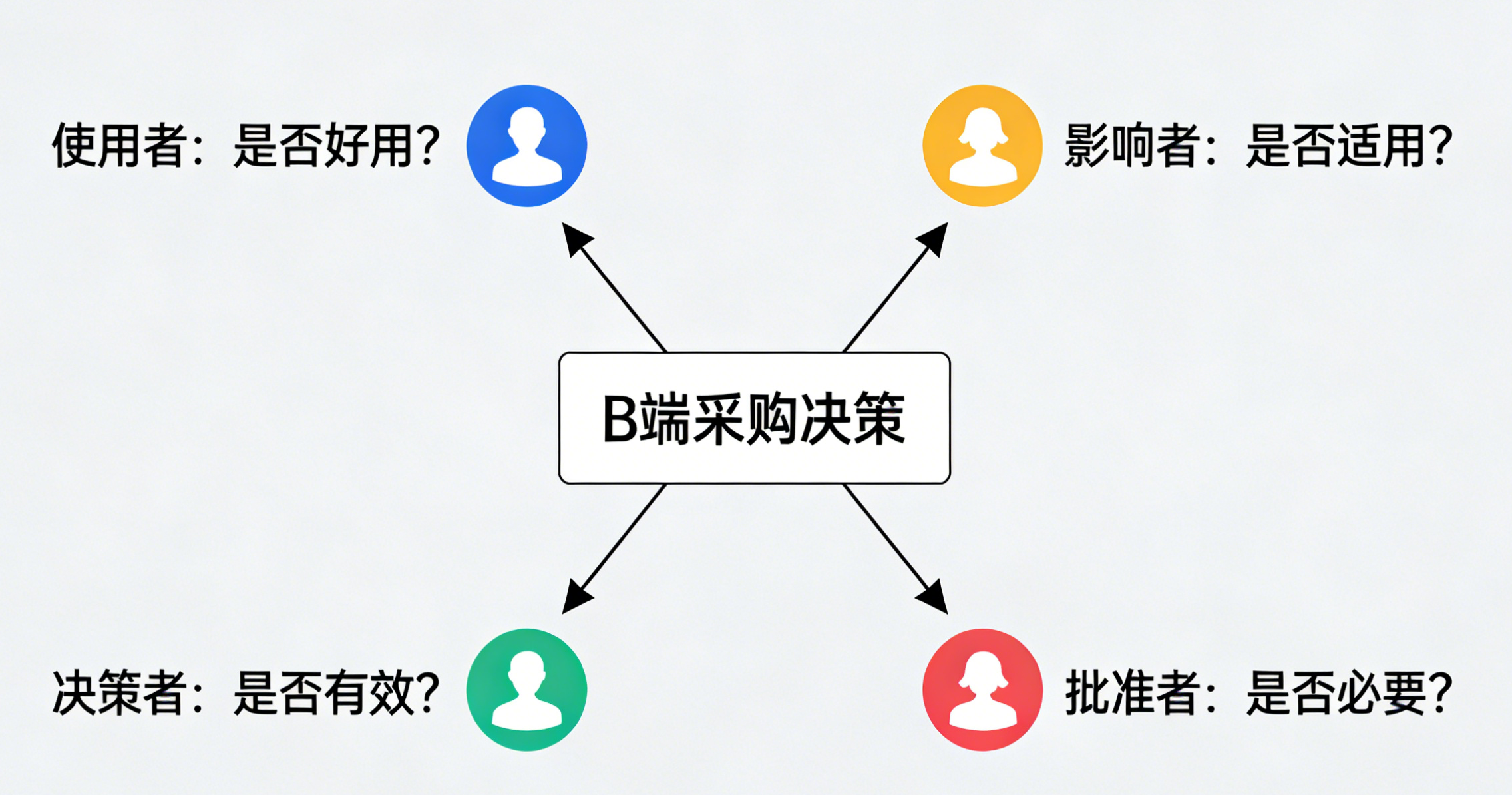 底层逻辑:B端采购并非单一角色的单点决策行为,而是由使用者、影响者、决策者、批准者构成的复杂决策网络,各参与层级均有其专属的核心诉求与价值评估标准,采购决策的最终落地,本质是多方参与主体的诉求平衡与博弈结果。