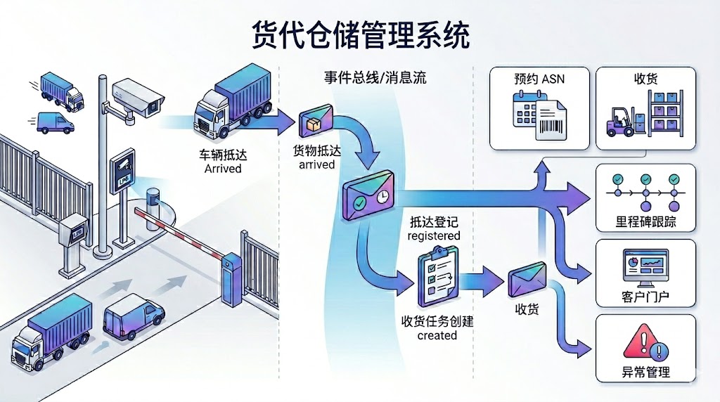 在货代仓里,到货不是“车来了就卸”这么简单:供应商直送、承运商配送、客户自送、跨仓转运同时发生;旺季车辆扎堆、月台排队、资料不全、到货差异频发,最终会把收货、质检、上架乃至截仓/截关节奏全部打乱。本文结合货代仓储业务特性,拆解预约与ASN(Advance Shipping Notice)模块的关键设计:多渠道ASN接入、预约时窗产品化、月台动态调度、到货登记与任务触发、以及把“责任边界”和“可对账指标”内置到流程里,让到货计划真正成为仓库的可执行排产。