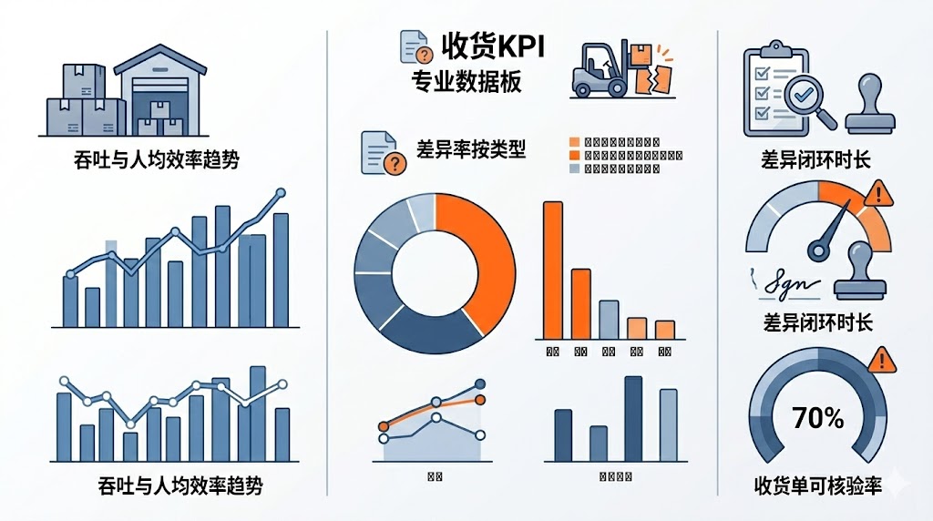 - 收货吞吐(托/箱/件/小时)、人均效率