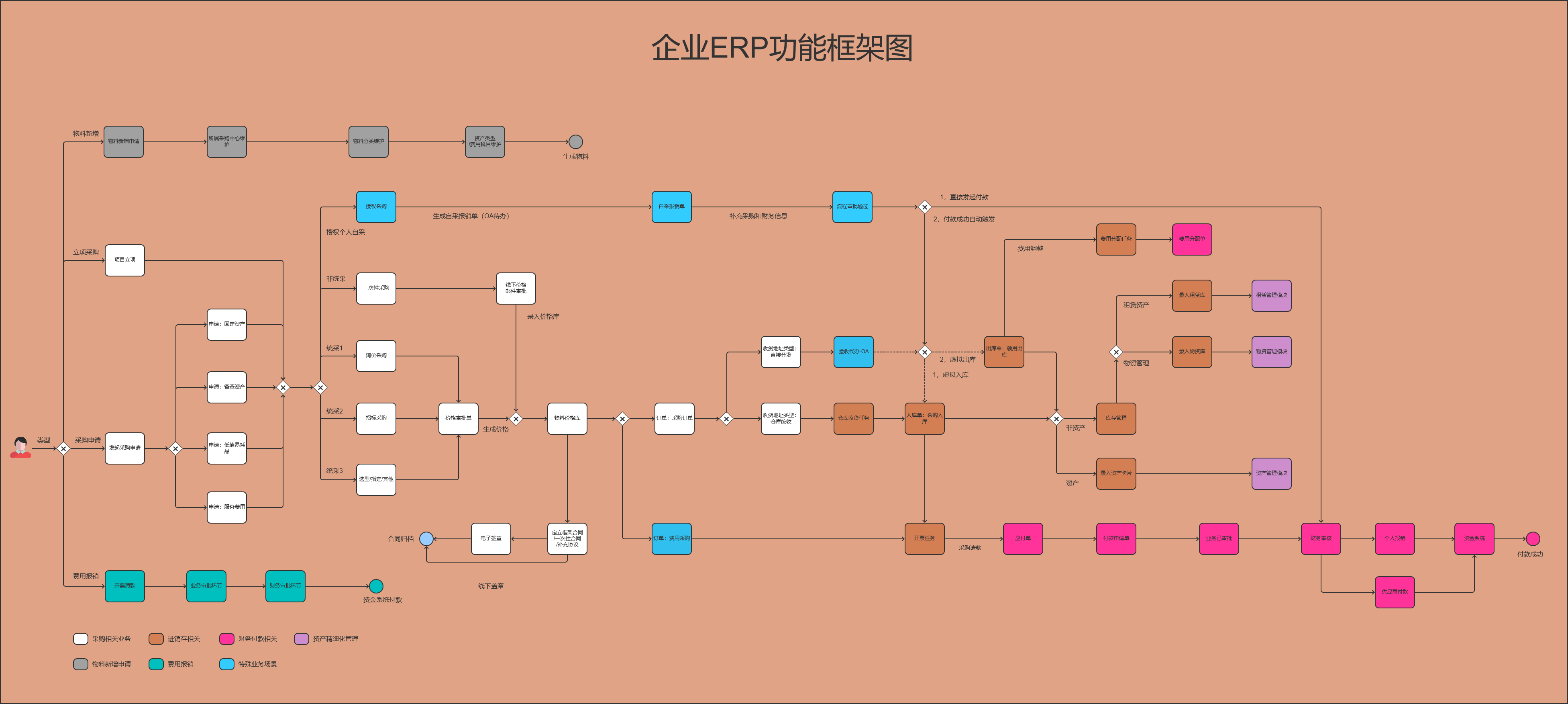 - 费用报销:对应场景一般为购买服务,比如差旅费,广告费等;不涉及物料的入库及出库;直接走财务报销相关流程即可