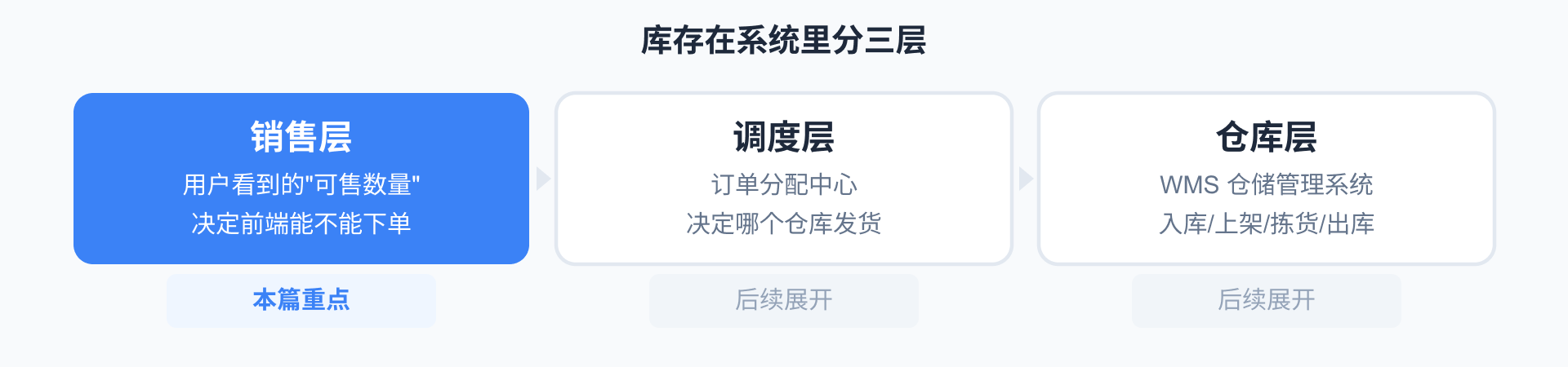这篇文章讲的主要是销售层——可售怎么算、怎么分配、怎么防超卖。调度层和仓库层涉及WMS和履约系统,后续系列会单独展开。
