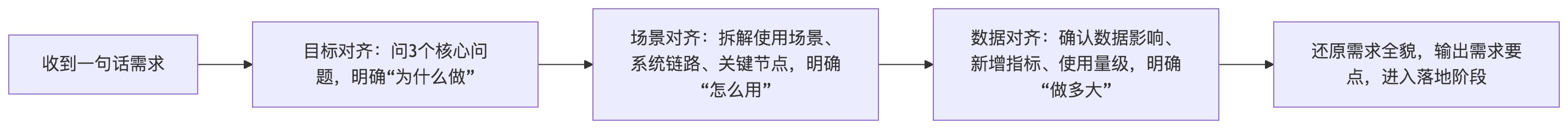 通过这3步,“一句话需求”就能变成“可落地、有目标、有边界”的具体需求,拆解流程如下: