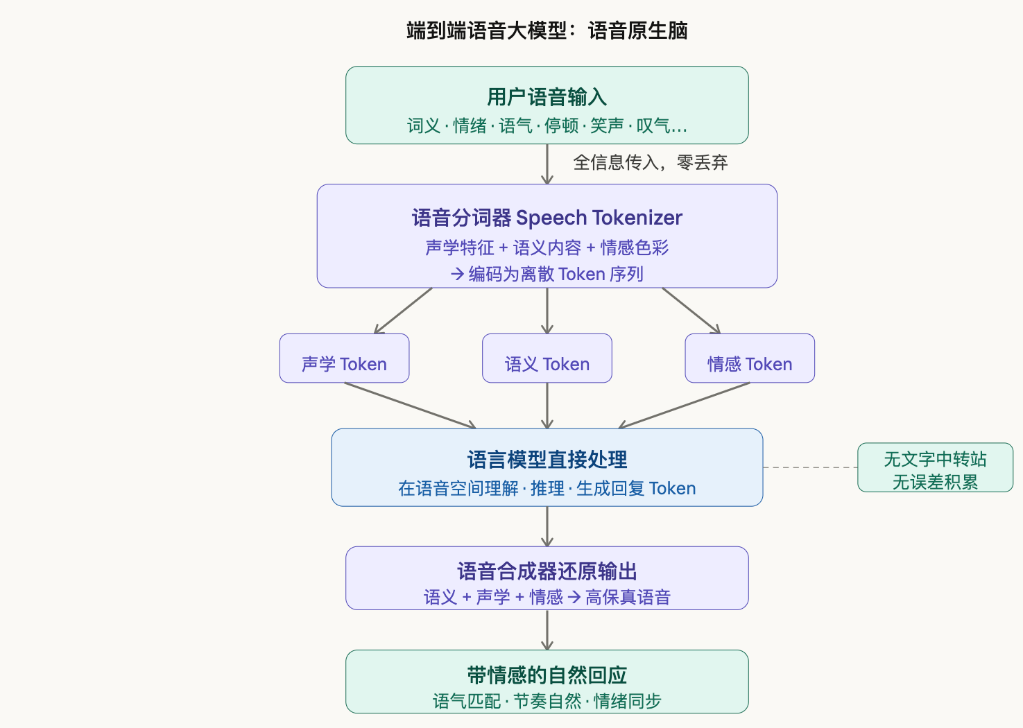 实现这一跃迁的关键,是一个叫做**语音分词器(Speech Tokenizer)**的技术突破。