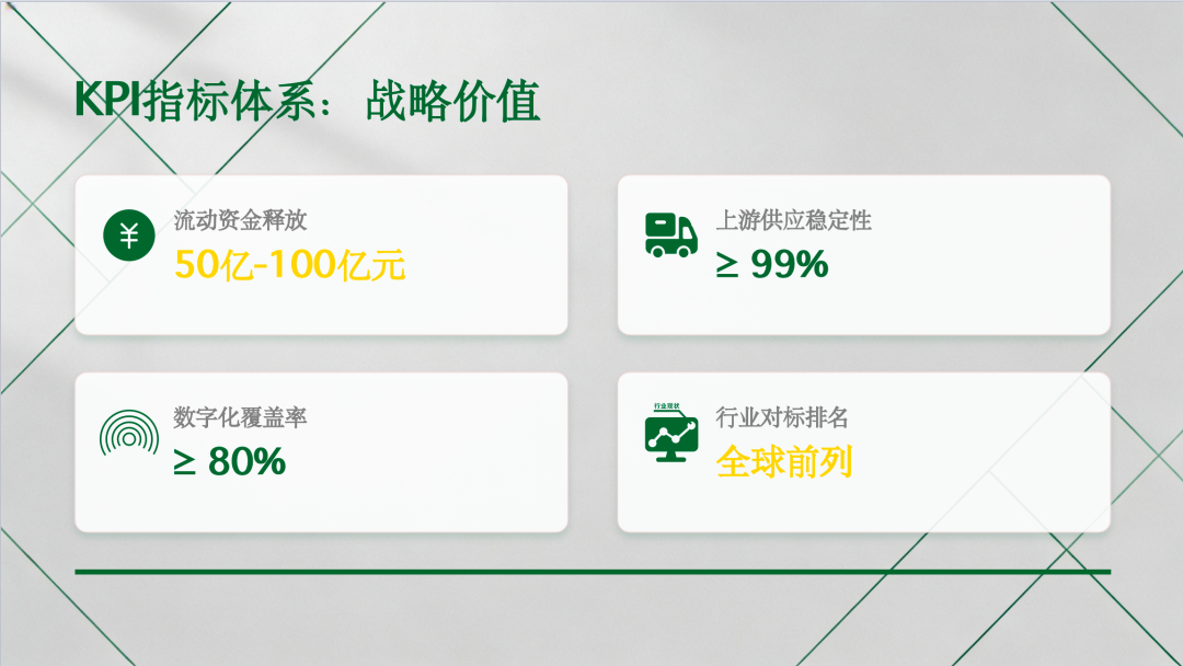 - 数字化覆盖率:供应链全环节数字化覆盖率100%,智能化应用率≥80%;