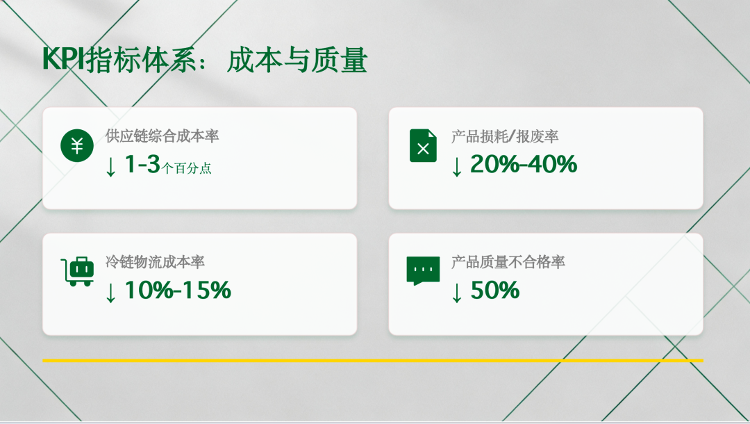 - 冷链物流成本率:下降10%-15%,降低最大物流成本支出;