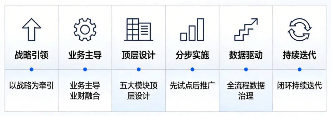 - 数据驱动原则:数据是IFS的核心基础,实施过程需将数据治理贯穿始终,从数据标准、数据采集、数据清洗到数据应用,建立全流程数据管控体系,确保数据准确、实时、统一,为IFS落地提供数据支撑。