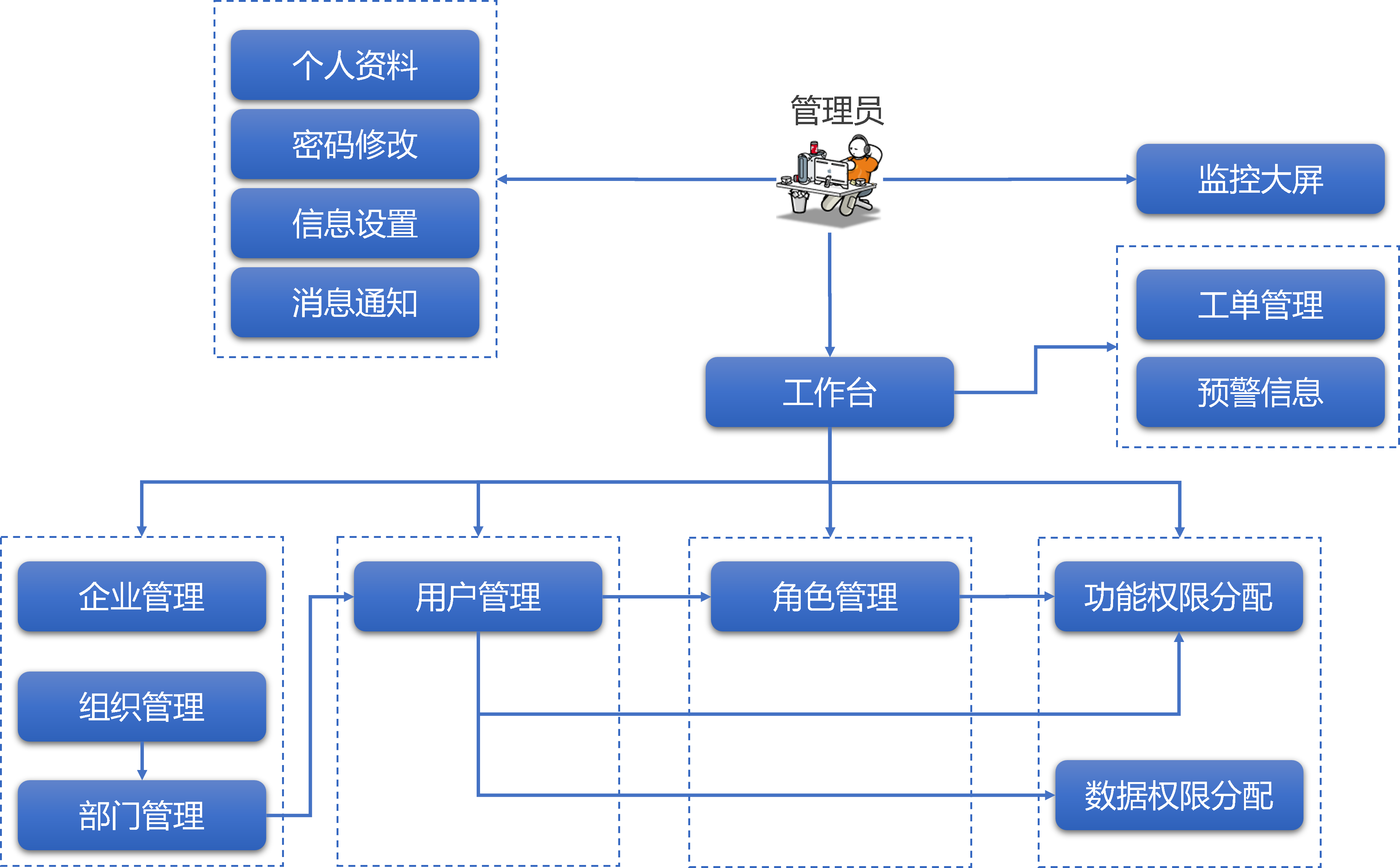 公司的组织及资源管控一般会有专人进行管理,俗称管理员。工作主要职责是负责公司的部门及人员维护,并为人员分配对应的功能及数据权限。