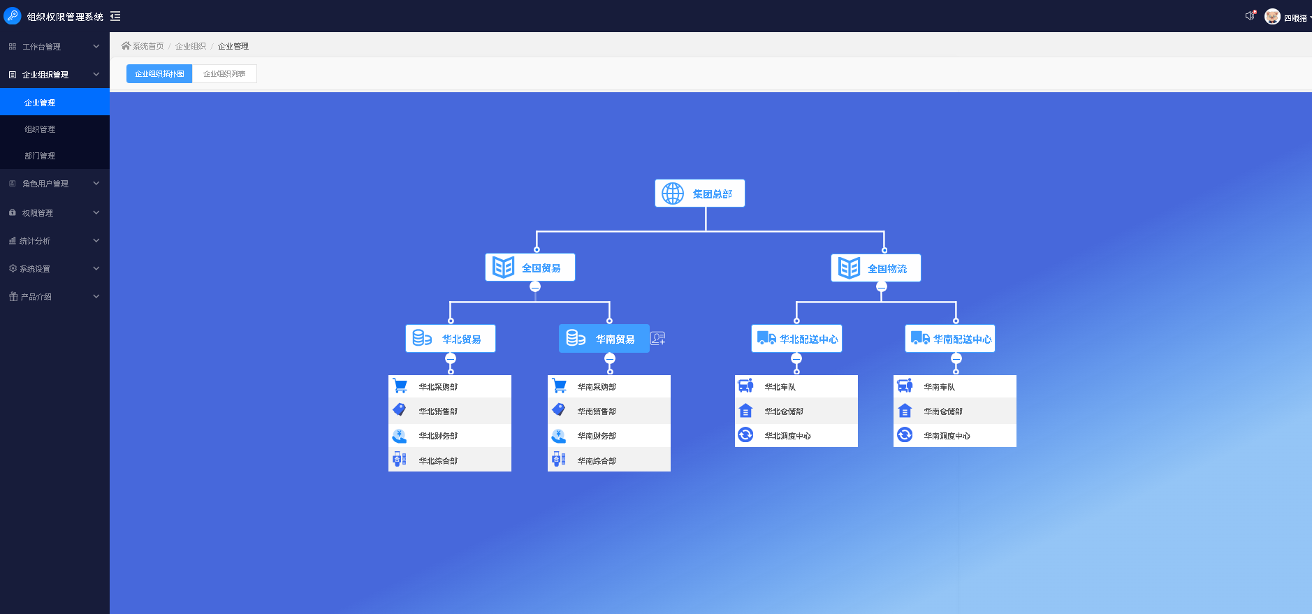 通过可视化企业组织拓扑图,直观呈现全公司整体组织结构与各部门核心信息,管理员可直接在公司层级下,快速完成对应部门的新建、删除等维护操作。