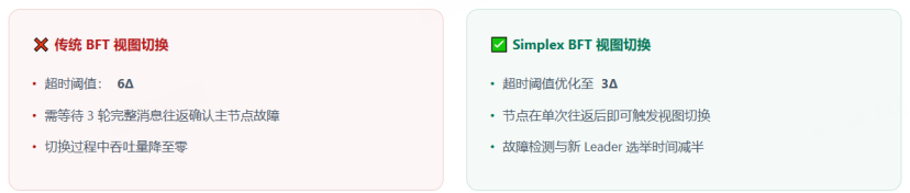 Tempo 的共识层基于 Simplex BFT 协议(ePrint 2023/463)。该协议通过流水线化设计,使每一轮确认延迟收敛至单个网络往返时间(1Δ)。