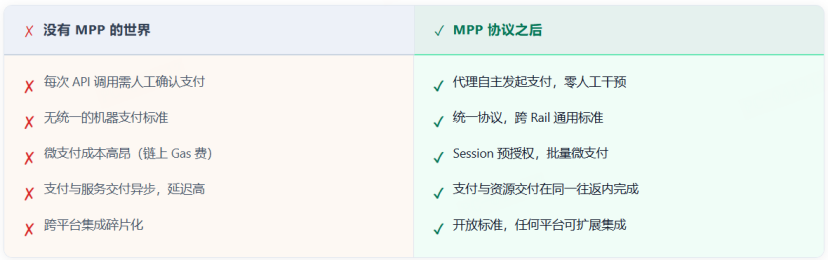其推出的MPP(机器支付协议)旨在解决一个核心问题:让AI代理能像人类一样自主、高频、小额地完成支付。传统支付需要人工确认,手续费高且慢。MPP通过“一次授权、连续扣费”的会话机制,使AI在调用服务、购买资源时能实时、低成本地自动付款,无需人工干预,从而真正释放AI代理的经济潜力。