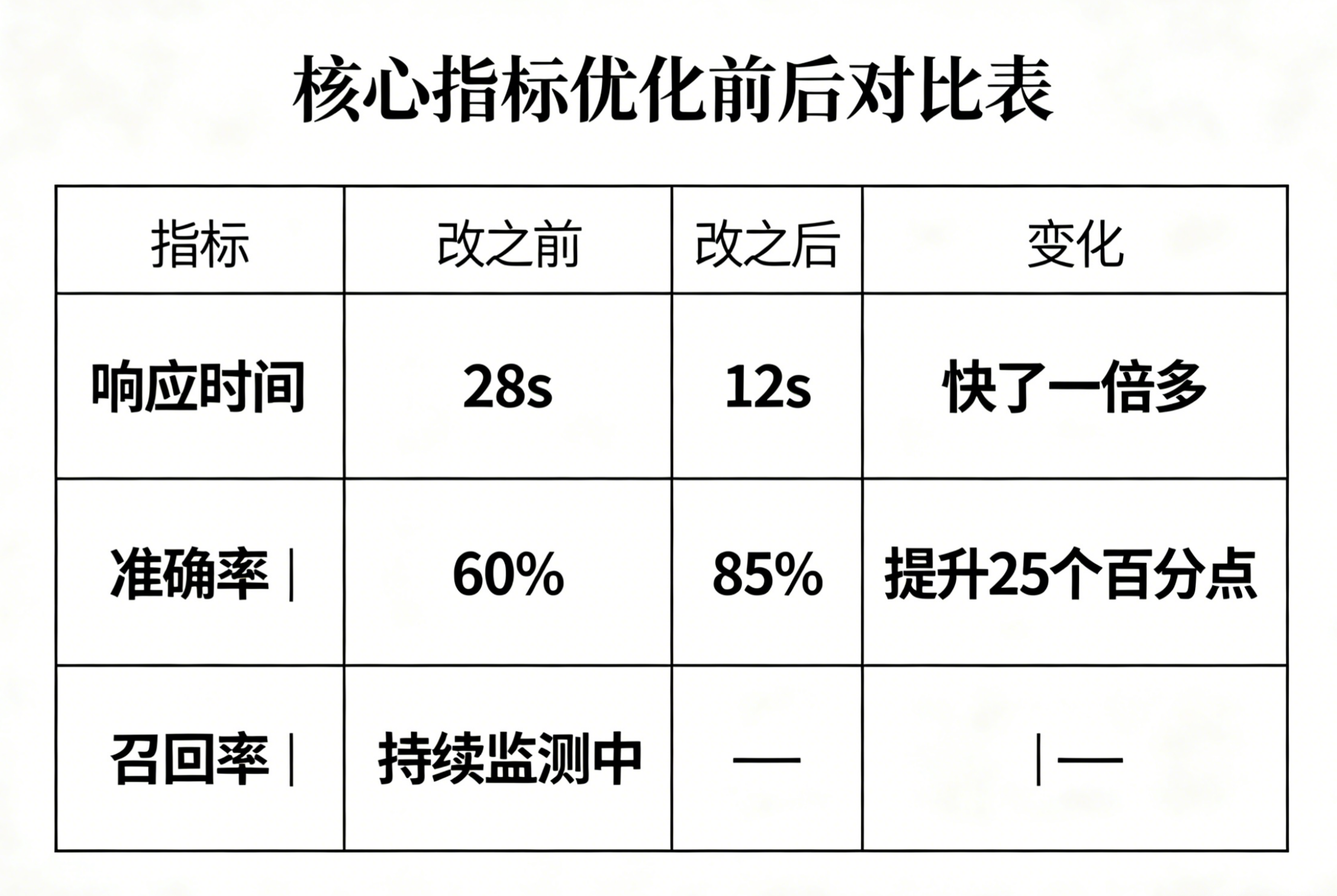 60%→85%,从”五个回答错两个”变成”绝大部分时候靠谱”。金融产品的用户信任就是这么一点点攒出来的。